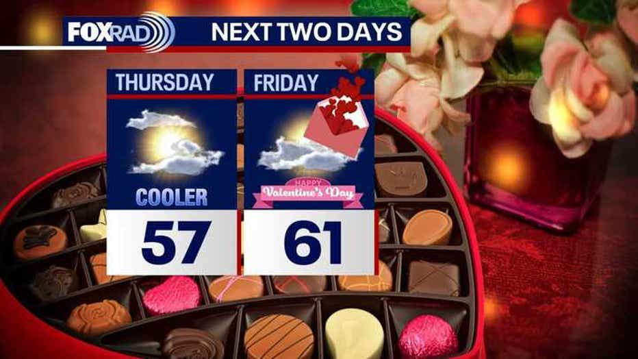 Bundle up for a windy, chilly Thursday with highs in the 50s and gusts near 20 mph. Valentine’s Day looks decent, but not great.