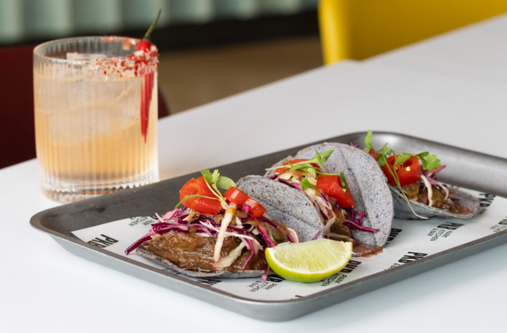 Just swinging by for a drink? You’re very welcome — though with the extensive menu of signature and classic cocktails, mocktails, wines, beers, ciders and spirits, you might struggle to stick to just the one. Drop in on a Tuesday to make the most of the special taco menu, washed down with margaritas (classic, mango, spicy or alcohol-free) for just £5 per serve. Take note: Happy hour is every Wednesday, Thursday and Friday, 5.30pm-6.30pm, with 2-for-1 on signature cocktails, spritzers and mocktails, a bottle of pinot grigio or pinot noir for £24, or four bottles of Asahi for £20.